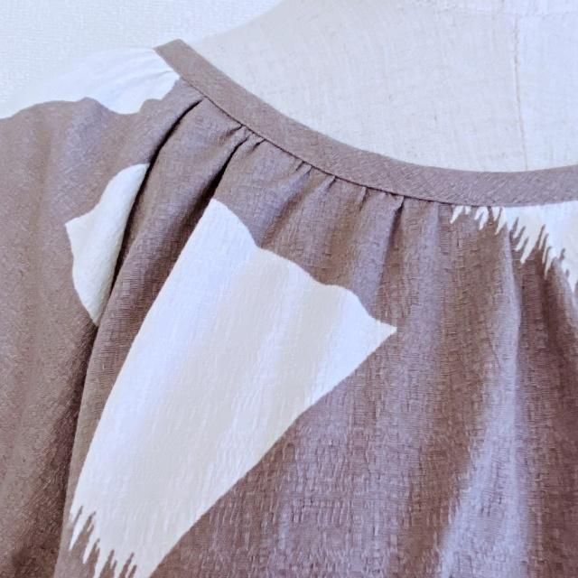ラグランスリーブでややAラインシルエットです。ネックラインや袖口のギャザーが愛らしいポイントです。