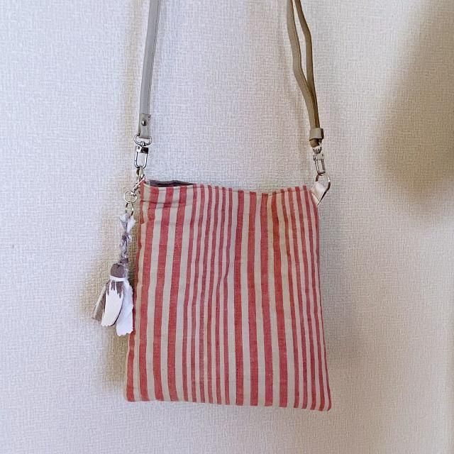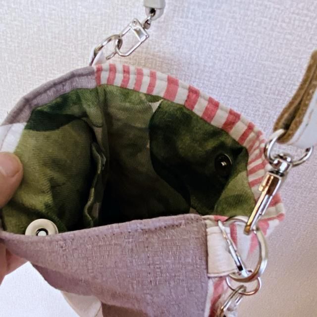ポシェットは表裏を変えて2面で使えます。ストラップは合皮で取り外しができます。
