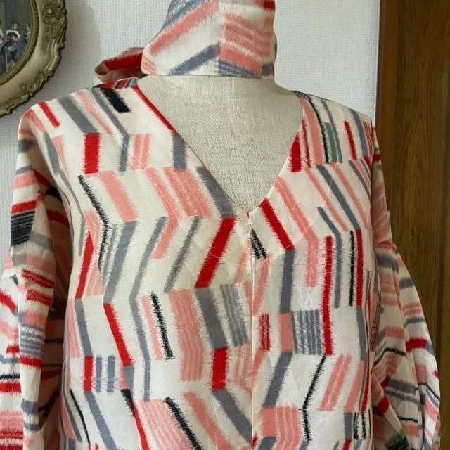 銘仙着物リメイク Vネックチュニック+ボウタイ