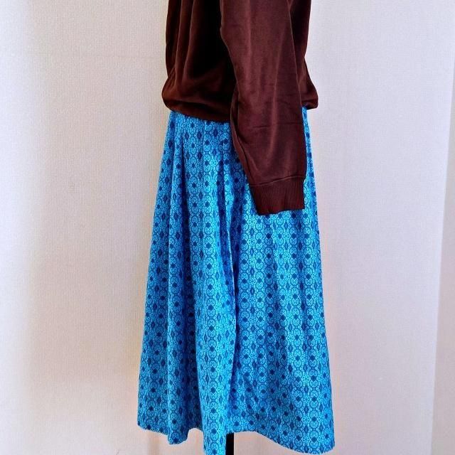 柄よりも地色が魅力的です。トップスにビビッド過ぎないカラーなら意外に合わせやすいのです。主役級のスカートです。