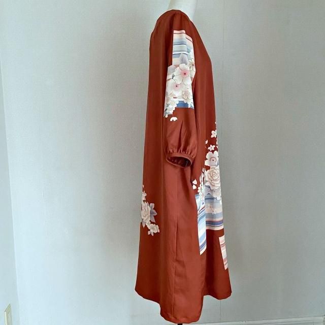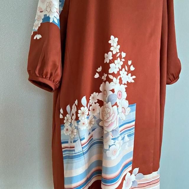 秋桜 着物リメイク Aラインワンピース