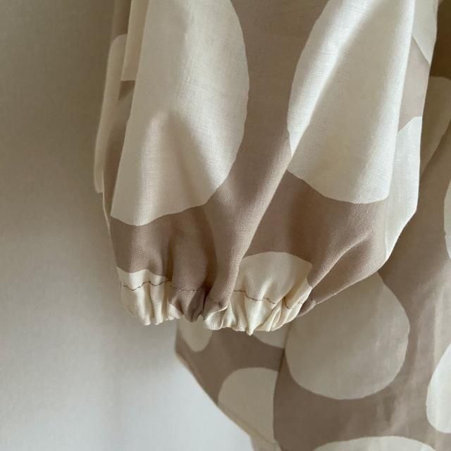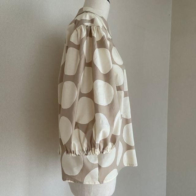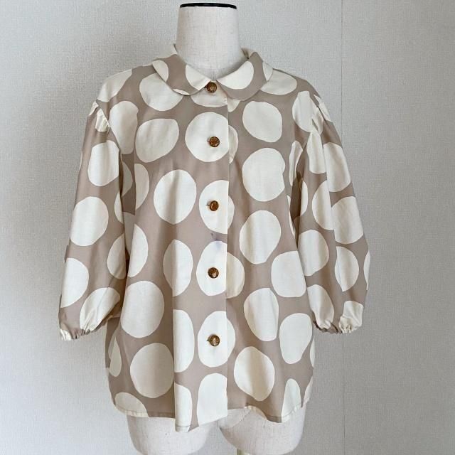 小さめの丸衿とふっくら膨らんだお袖が可愛らしいブラウスです。身幅も肩幅も広くゆったりしています。二の腕に掛かったあたりが袖山なので肩が華奢に見えます。