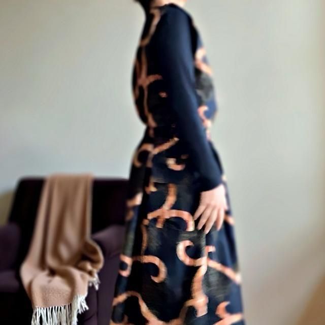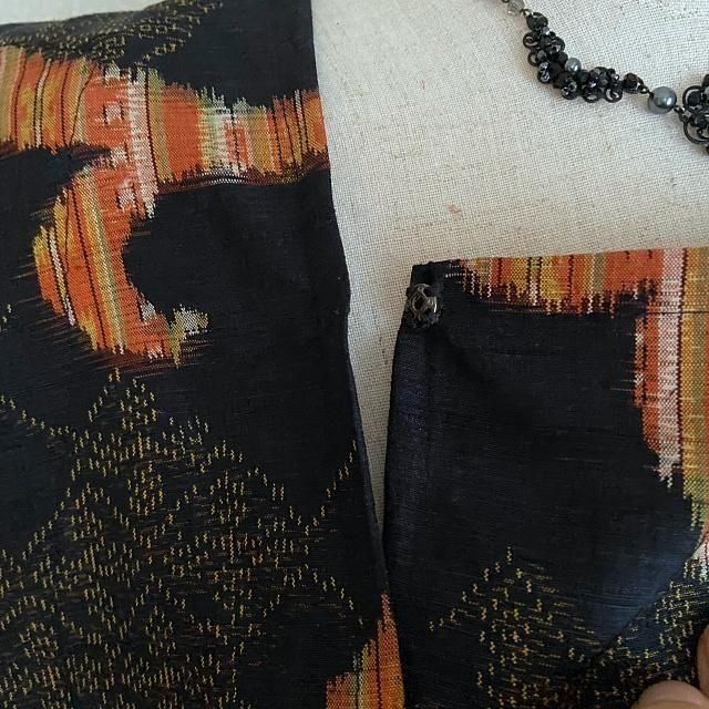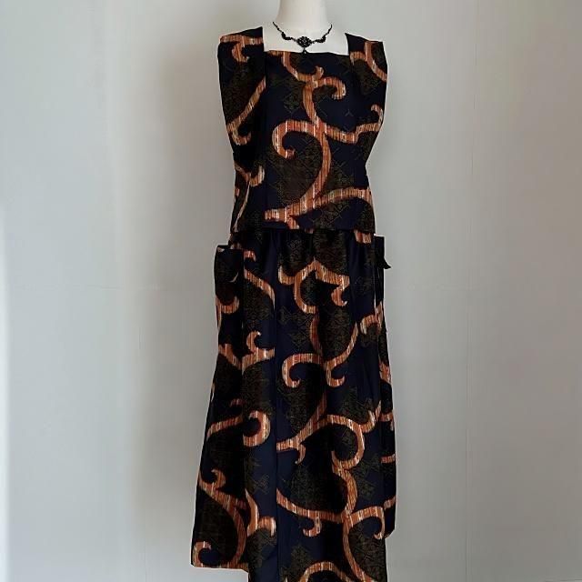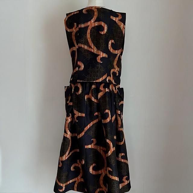 人絹ジャガード 着物リメイク Aラインワンピース+ボウタイセット