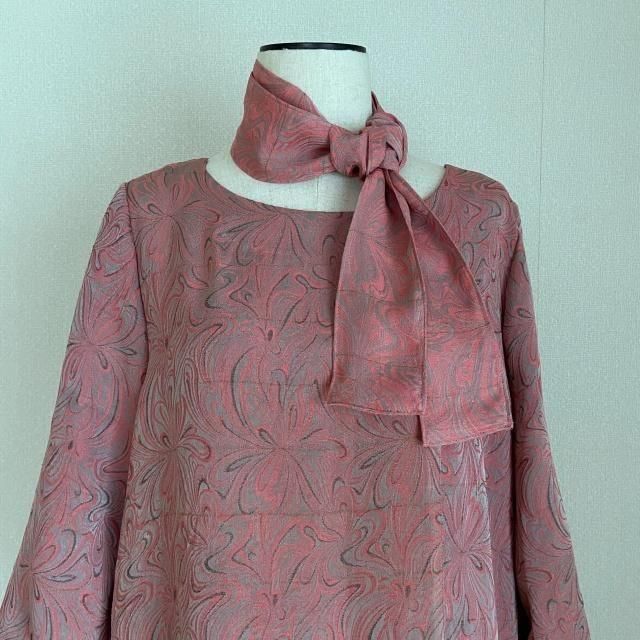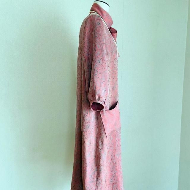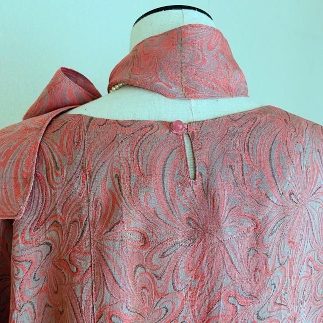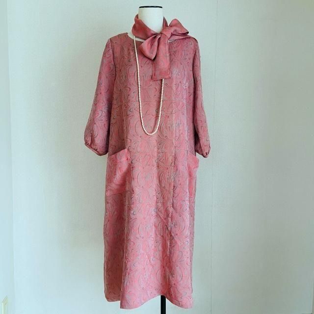 人絹ジャガード 着物リメイク Aラインワンピース+ボウタイセット