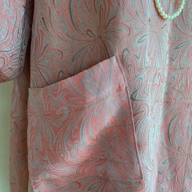 ・洋服時のようなジャガード生地のお着物をリメイクしました。人絹(レーヨン)です。